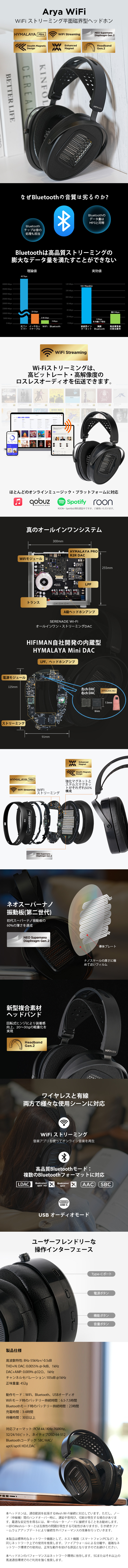 動作モード : WiFi、Bluetooth、USBオーディオ