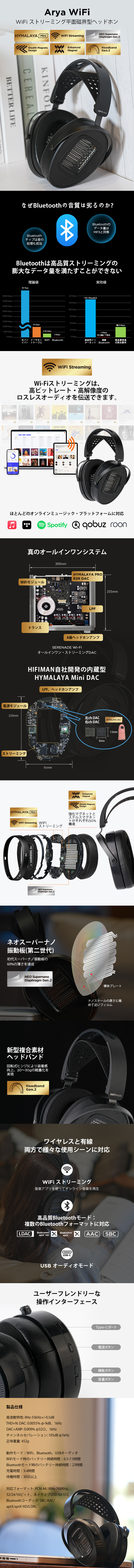 動作モード : WiFi、Bluetooth、USBオーディオ